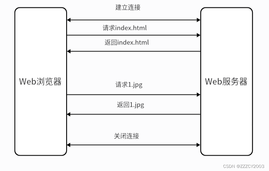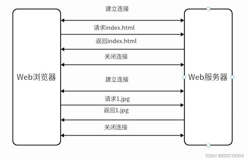 (1)非持久连接 在非持久连接下,访问过程如下图: