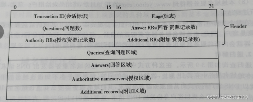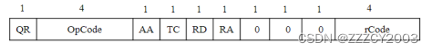QR:查询/响应标志,0表示查询报文;1表示响应报文。 Opcode:0表示标准查询,1表示反向查询;2表示服务器状态请求。 AA:表示授权回答(autboritstive answer)。 TC:表示可截断的(trupcsted)。 RD:表示期望递归。 RA:表示可用递归,随后3bit必须为0。 Rcode:返回码,表示返回码,0表示没有差错,3表示名字差错,2表示服务器错误(Server Failure)。