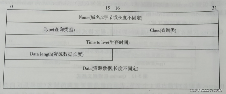 包含所查询的DNS域名的资源记录,资源记录格式如图: