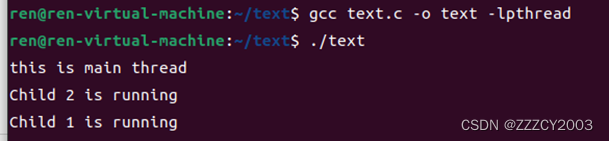 展开代码#include <stdio.h> #include <stdlib.h> #include <pthread.h> void* child1(){ printf("Child 1 is running\n"); pthread_exit(NULL); } void* child2(){ printf("Child 2 is running\n"); pthread_exit(NULL); } int main() { printf("this is main thread\n"); pthread_t tid1, tid2; int ret; ret = pthread_create(&tid1, NULL, child1, NULL); if (ret != 0) { printf("Error creating tid 1\n"); exit(EXIT_FAILURE); } ret = pthread_create(&tid2, NULL, child2, NULL); if (ret != 0) { printf("Error creating tid 2\n"); exit(EXIT_FAILURE); } pthread_join(tid1, NULL); pthread_join(tid2, NULL); return 0; }