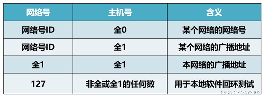 全0和全1地址有特殊含义,不分配给主机和路由器。如下图: