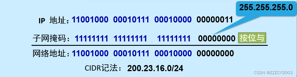 - 32位的子网掩码由前面连续的若干个1和后面连续的0组成,1的个数就是对应IP地址网络前缀的长度。
