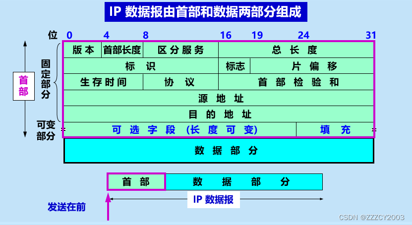 - 首部的前一部分是固定长度,共20字节,是所有IP数据报必须具有的。
