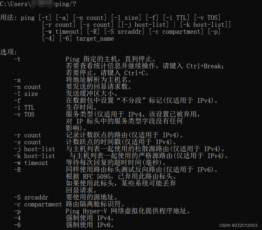 可以查看ping的具体使用方法,如下图: