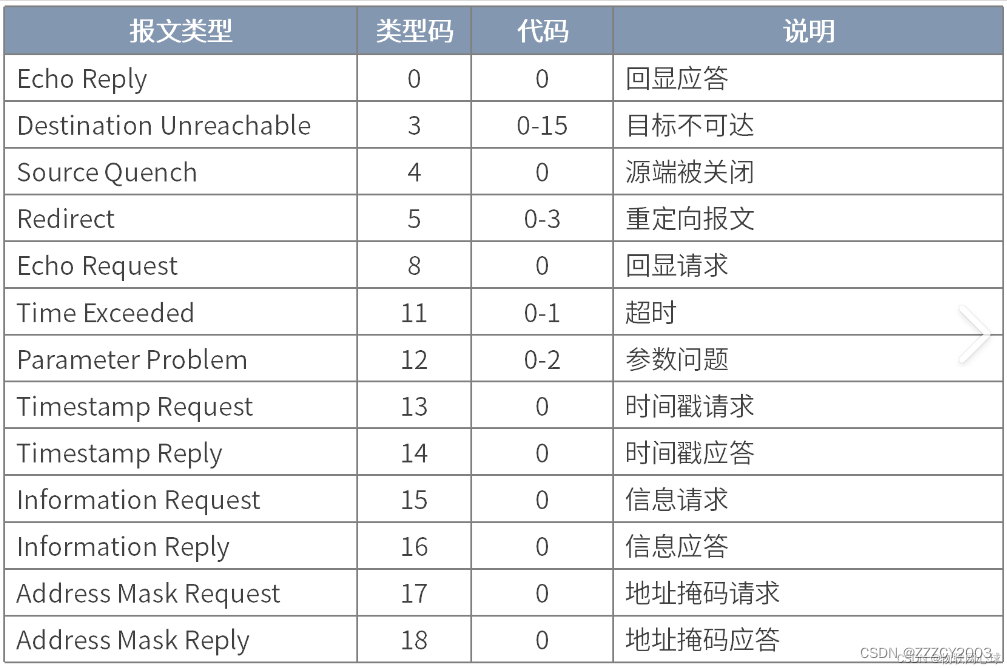 - 终点不可达报文(类型3):IP数据报无法到达目的地时,路由器或主机向源主机发送终点不可达报文。