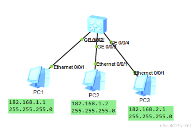 展开代码vlan batch 10 20 //创建两个vlan //接口一 int g0/0/1 port link-type access //设置交换机的接口类型 port default vlan 10 //设置各个接口对应的vlan //接口二 int g0/0/2 port link-type access //设置交换机的接口类型 port default vlan 20 //设置各个接口对应的vlan