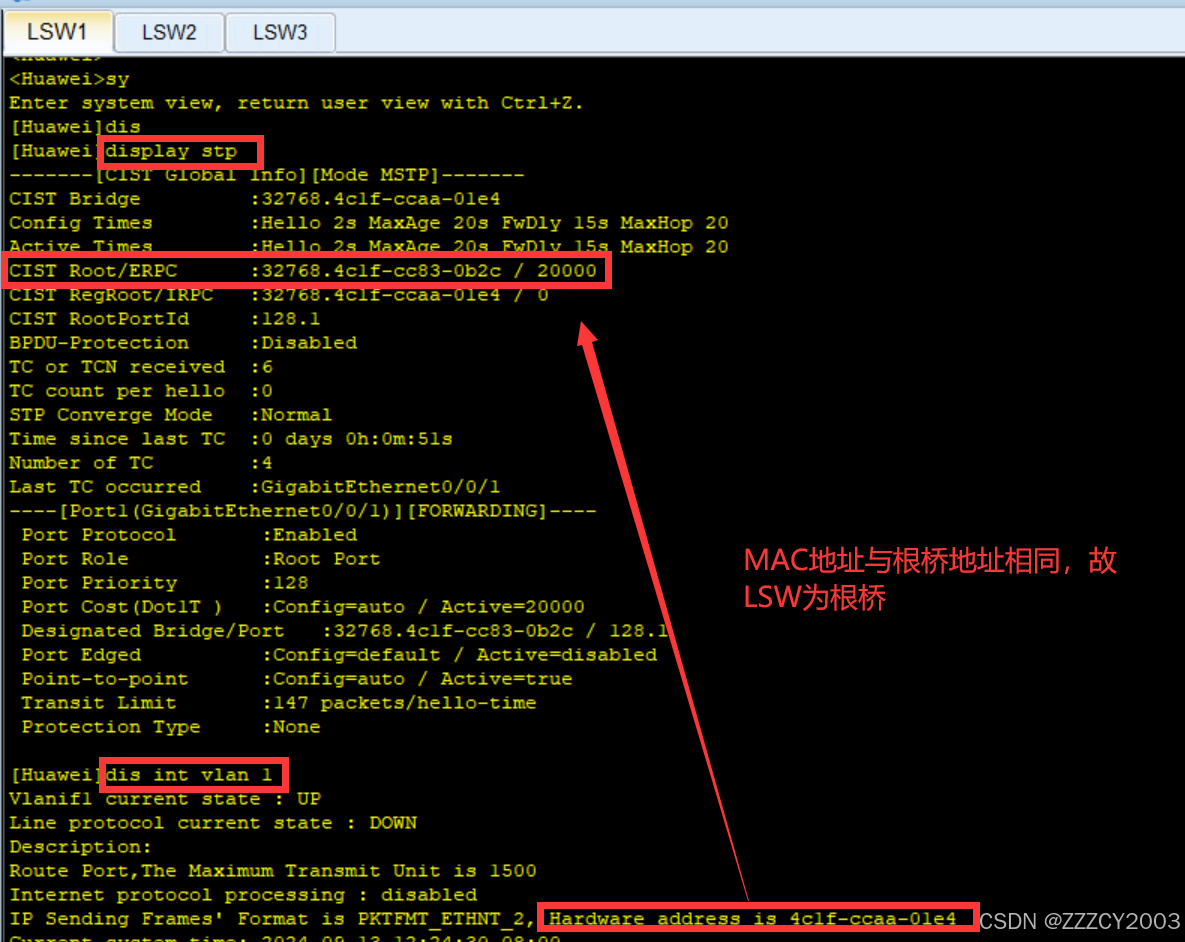 - Root Identifier:当前根桥的BID(Bridge Identifier,桥标识符),共占用8字节。前2个字节是网桥的优先级,后6个字节是网桥的MAC地址。