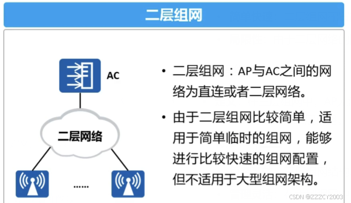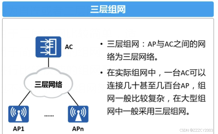 在三层组网中,AP无法直接发现AC,需要通过DHCP或DNS方式动态发现,或者配置静态IP。AP与AC之间的网络为三层网络。