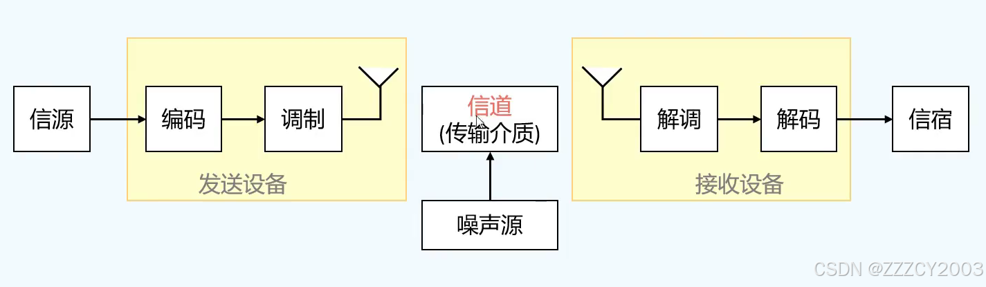 信息需要通过信源编码转换成方便电路计算和处理的数字信号,再经过信道编码和调制,转成无线电波发射出去。接收设备收到之后,会将无线电波进行解调和信道解码之后,最终转换成信息