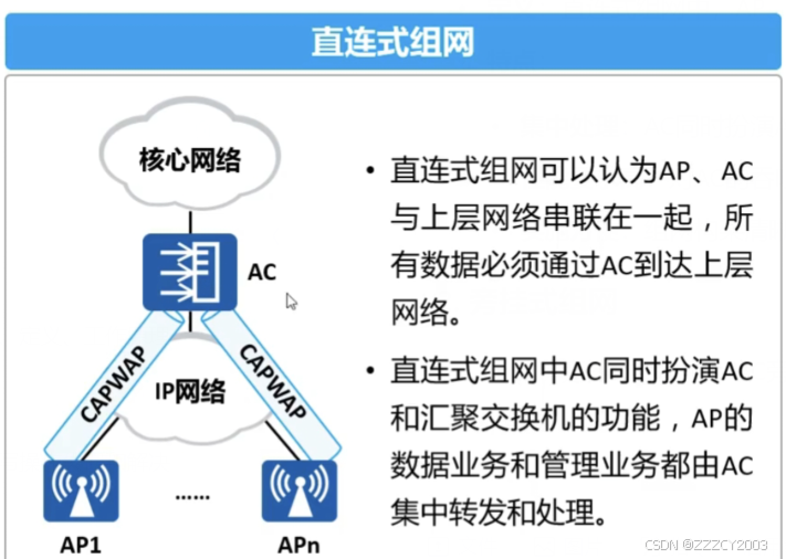 优点:易于管理和扩展;支持无缝漫游;可以统一应用安全策略和监控;适合大规模的无线网络部署,如企业、学校、商场等