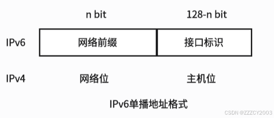 - IPv6的全球单播地址和任播地址的格式相同
