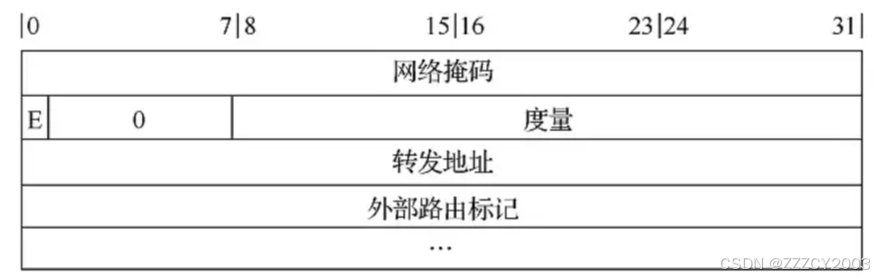 - E(External,外部):如果产生此LSA的路由器是ASBR,则置为1