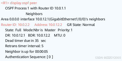 - Backup Designated Router (BDR):BDR的IP地址。如果未选举BDR,则该字段为0.0.0.0