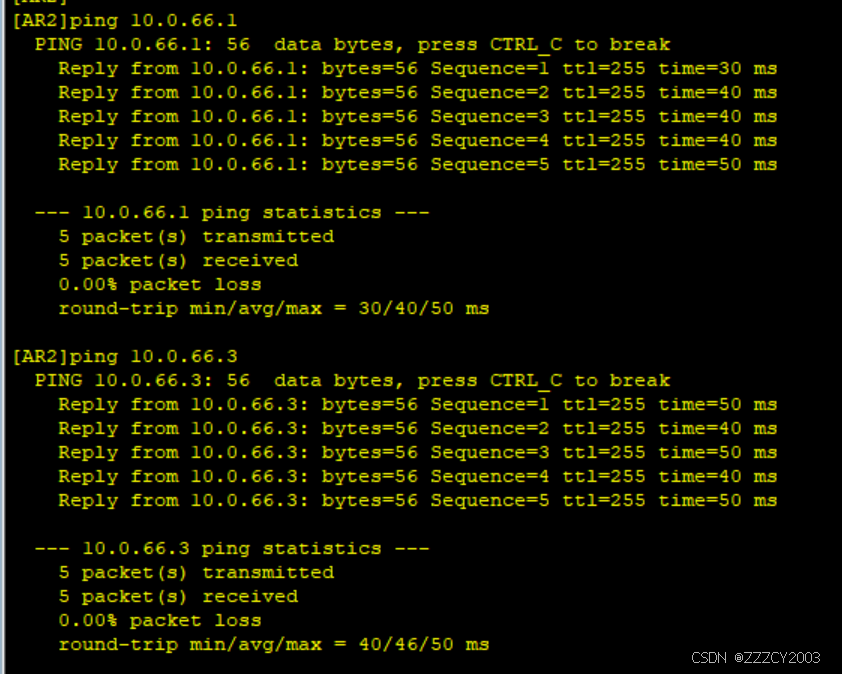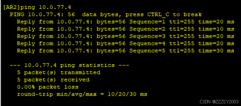 以AR2为例,pingAR1、AR3、AR4,测试连通性