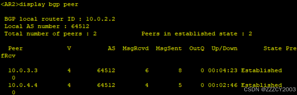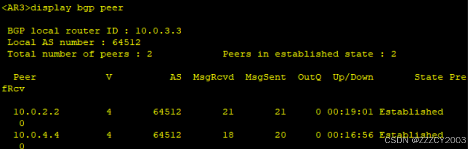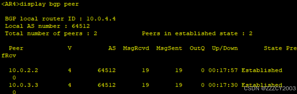 可以看到AR2、AR3、AR4之间已经相互建立了全互联的IBGP对等体关系