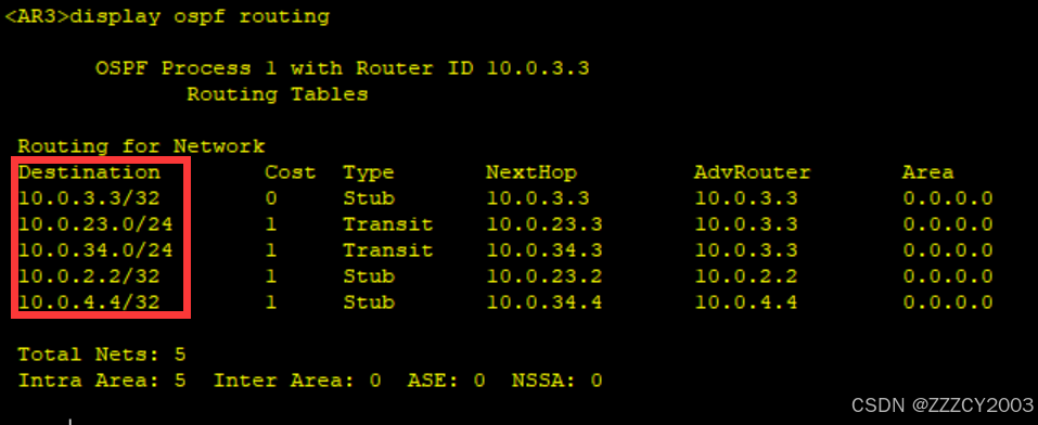 AR1、AR5之间都相互学习到各自的Loopback 1接口路由