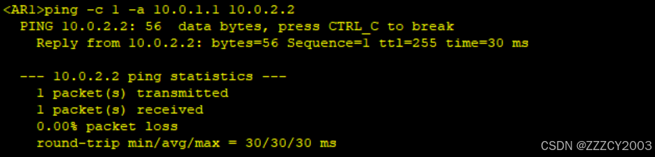 展开代码<AR1>ping -c 1 -a 10.0.1.1 10.0.2.2