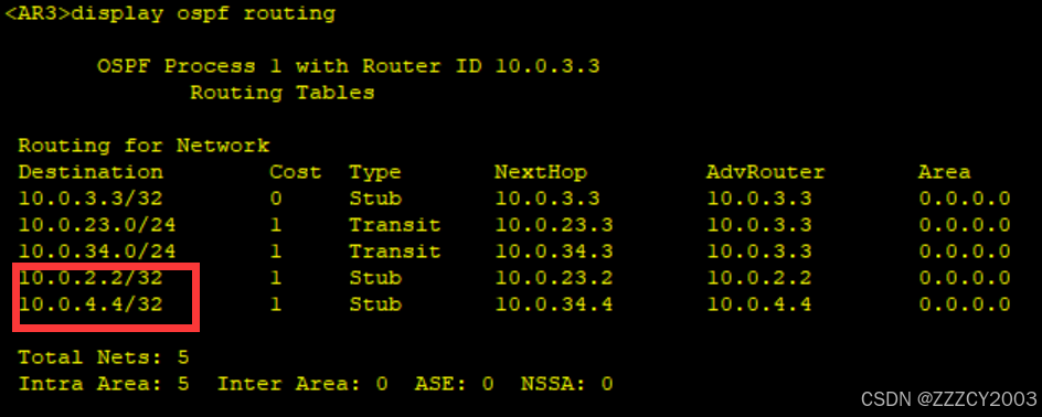 展开代码<AR3>display ospf routing 10.2.2.2