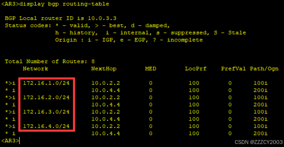 展开代码<AR3>display bgp routing-table
