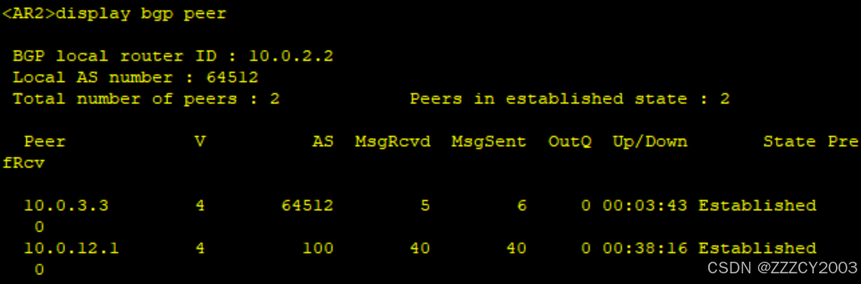 展开代码<AR2>display bgp peer