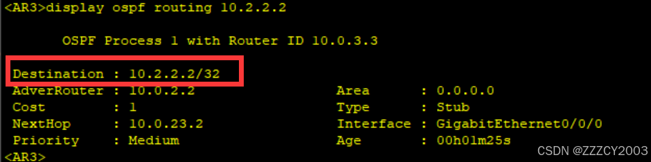 在AR3查看OSPF路由10.2.2.2/32