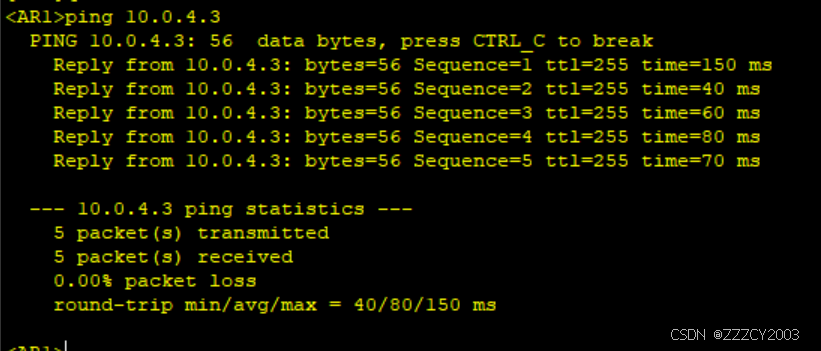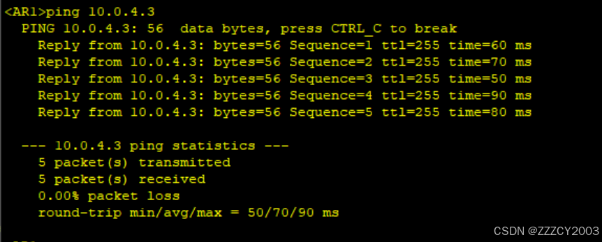 展开代码<AR1>ping 10.0.4.3