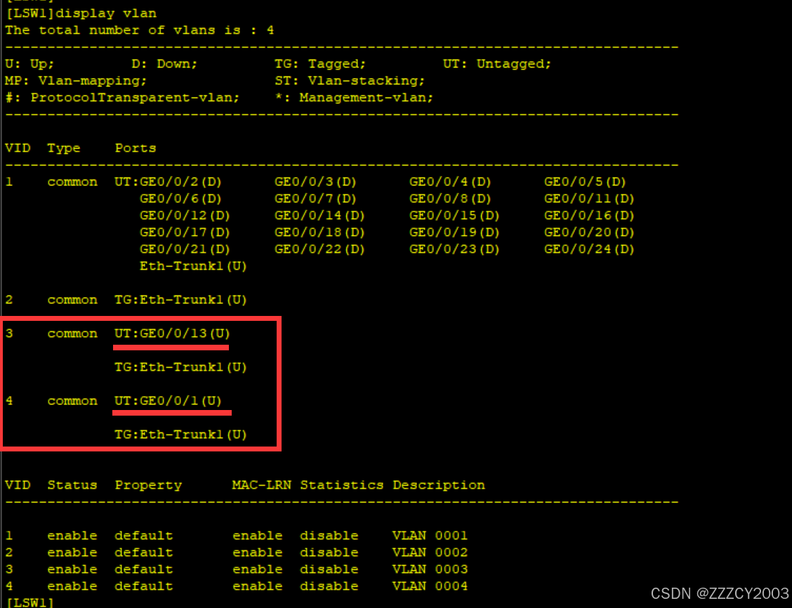 展开代码[LSW1]display vlan