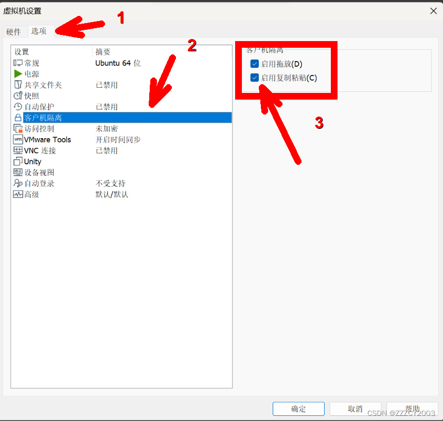 然后还是右键点击虚拟机-->找到设置-->选项-->客户机隔离-->勾选客户机隔离里面的两项