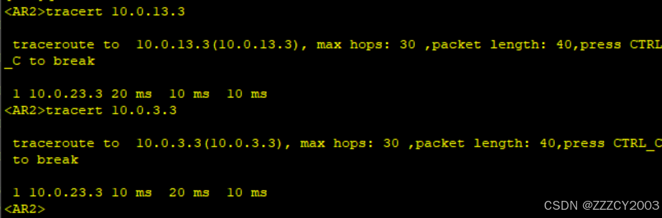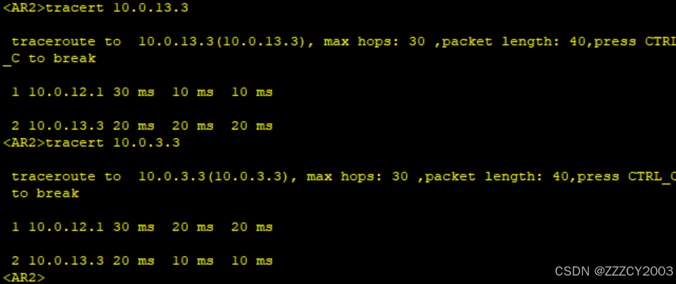 展开代码<AR2>tracert 10.0.13.3 <AR2>tracert 10.0.3.3
