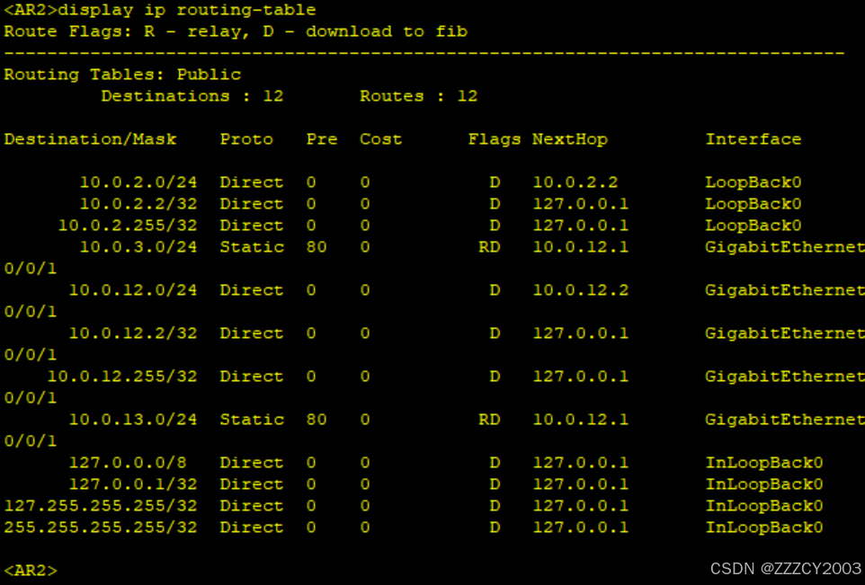 展开代码<AR1>ping 10.0.12.2 <AR1>ping 10.0.13.3