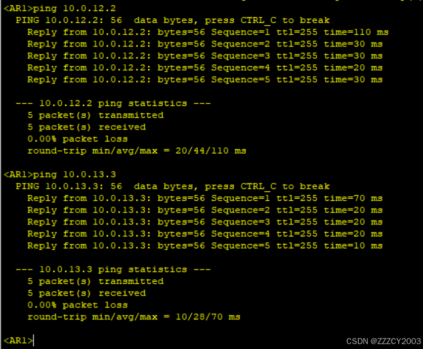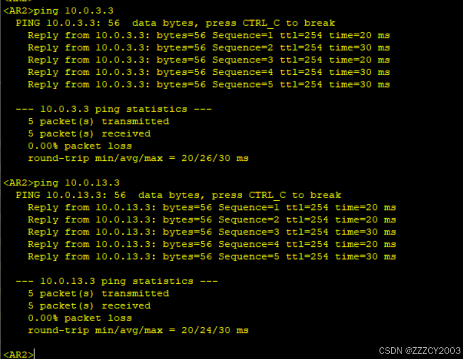 展开代码<AR2>ping 10.0.13.3 <AR2>ping 10.0.3.3