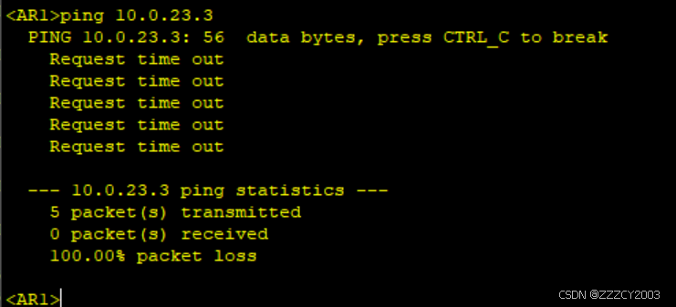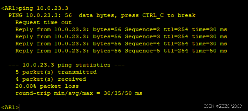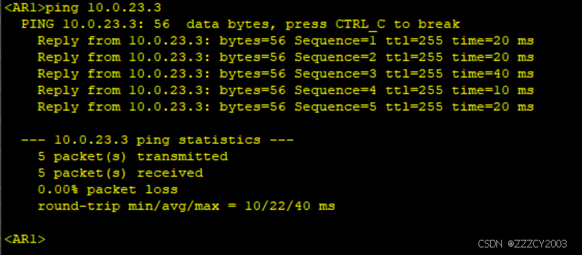 配置完成后,测试AR1和10.0.23.3网络之间的连通性