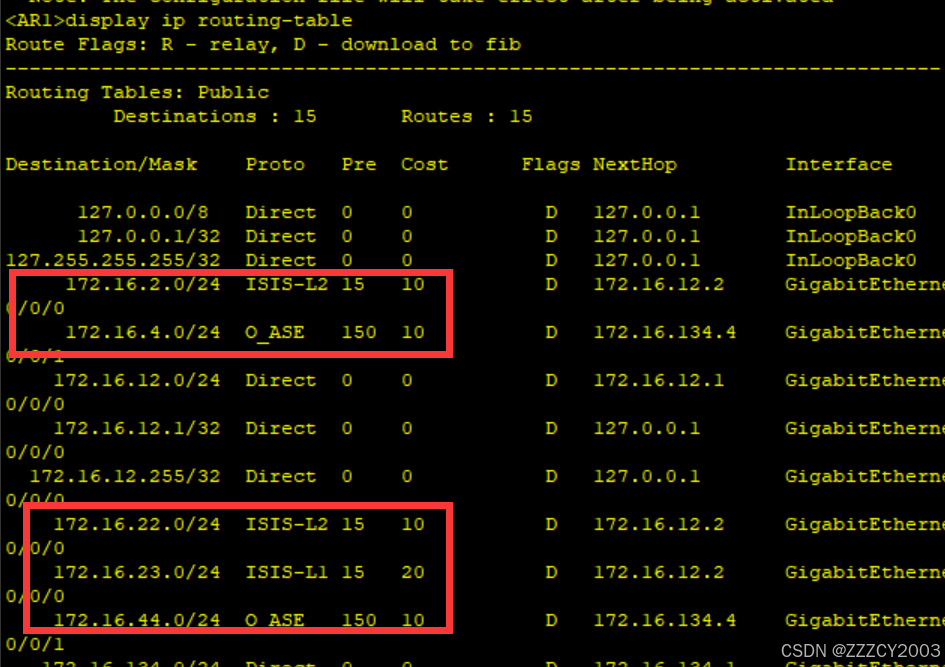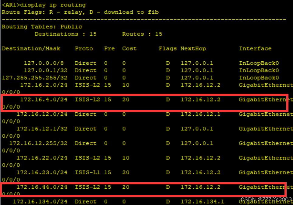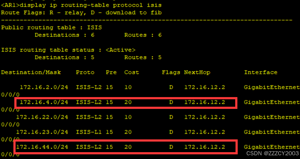 展开代码<AR1>display ip routing-table protocol isis