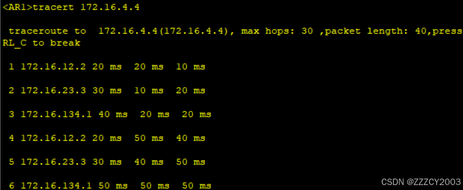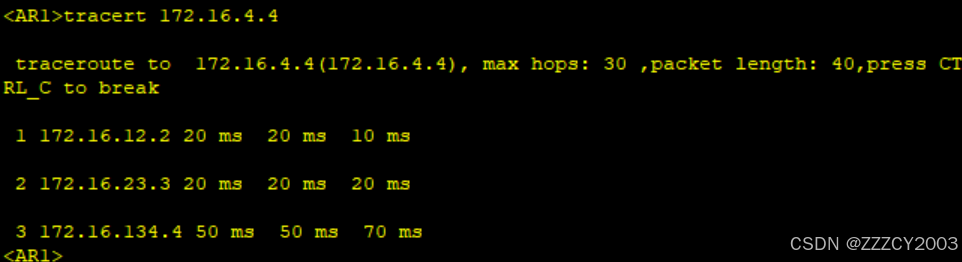 展开代码<AR1>tracert 172.16.4.4