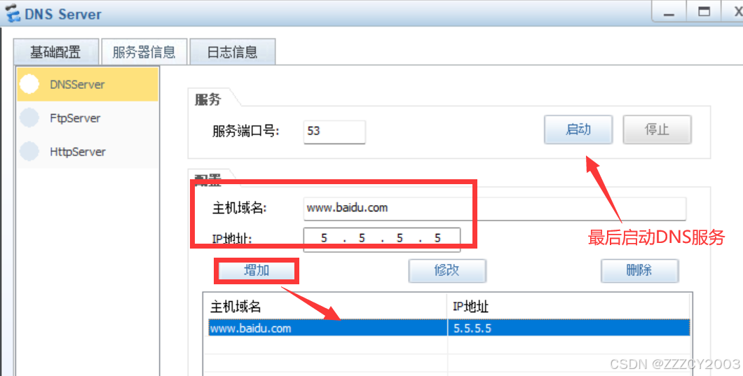 以DNS Server服务器为例,www.baidu.com服务器也是一样的配置