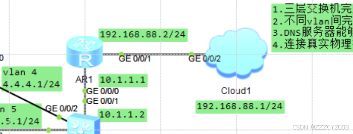 展开代码[AR1]int g0/0/1 [AR1-GigabitEthernet0/0/1]ip address 192.168.88.2 24 [AR1-GigabitEthernet0/0/1]q [AR1]