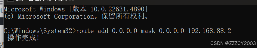 当然到了这里还是差了一点东西,PC机可以发请求包给物理机了,而物理机却没有路径回应应答包回来,所以我们需要以管理员的权限打开物理机的命令行,增加一条默认路由