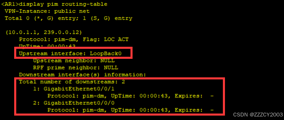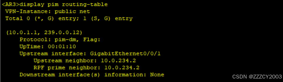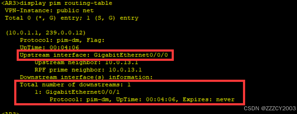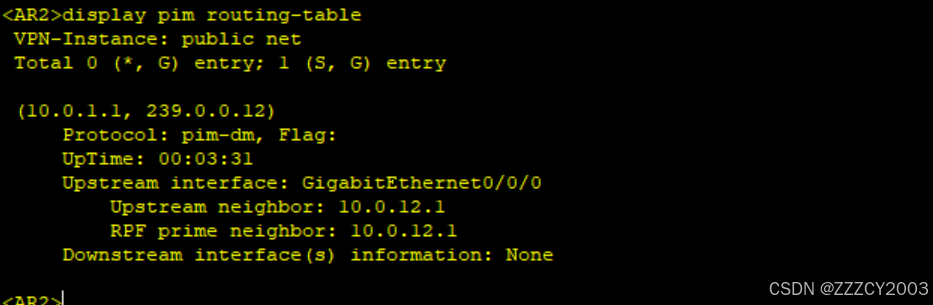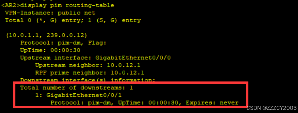 当已发送(sent)个数不为0时,再去查看下游的(S,G)表项,否则将无法看到内容。 PIM-SM 并无State-Refresh 报文,因此无法使用该方式触发生成组播路由表