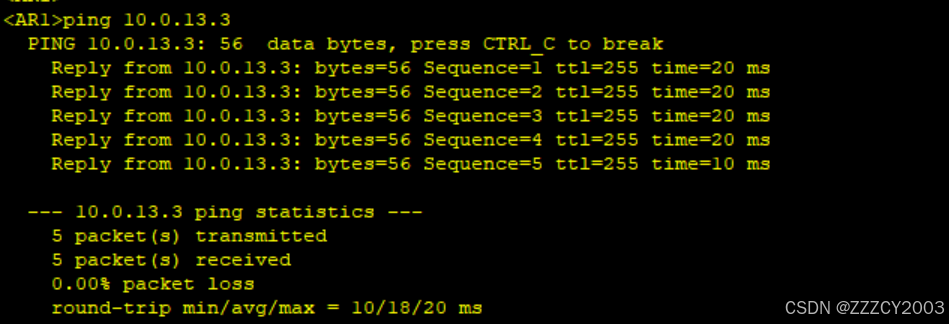 展开代码# AR1上模拟组播源,发送组播流量 <AR1>ping -a 10.0.1.1 -c 10 239.0.0.12