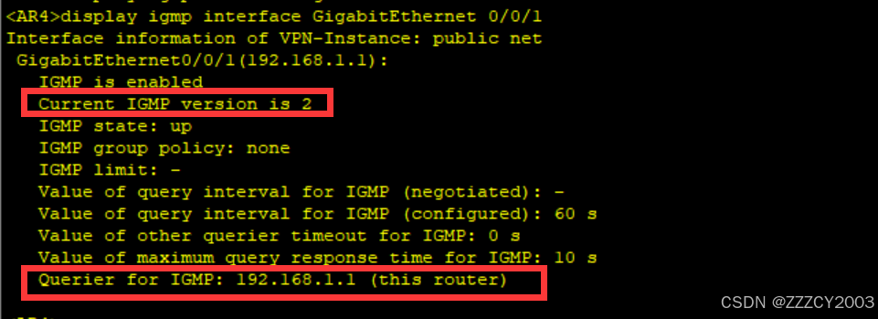 默认IGMP的版本为V2,AR4为IGMP的查询者