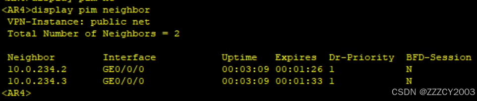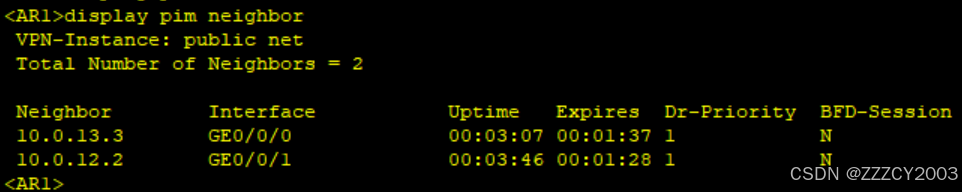 展开代码<AR1>display pim neighbor