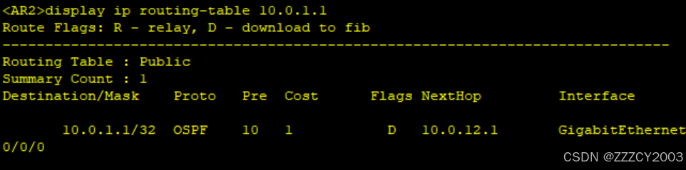 展开代码<AR2>display ip routing-table 10.0.1.1