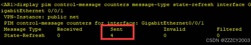 展开代码<AR1>display pim control-message counters message-type state-refresh interface GigabitEthernet 0/0/1