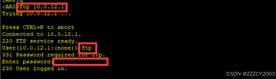 展开代码[AR1]aaa [AR1-aaa]local-user ftp service-type ftp Info: Add a new user. [AR1-aaa]local-user ftp password cipher zhengchangren [AR1-aaa]local-user ftp privilege level 15 [AR1-aaa]local-user ftp ftp-directory flash: [AR1-aaa]q [AR1]ftp server enable Info: Succeeded in starting the FTP server