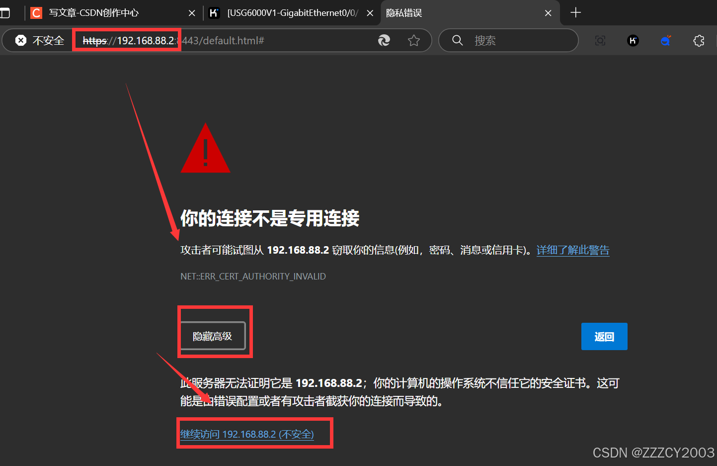 现在到我们的浏览器,访问防火墙的接口IP地址192.168.88.2