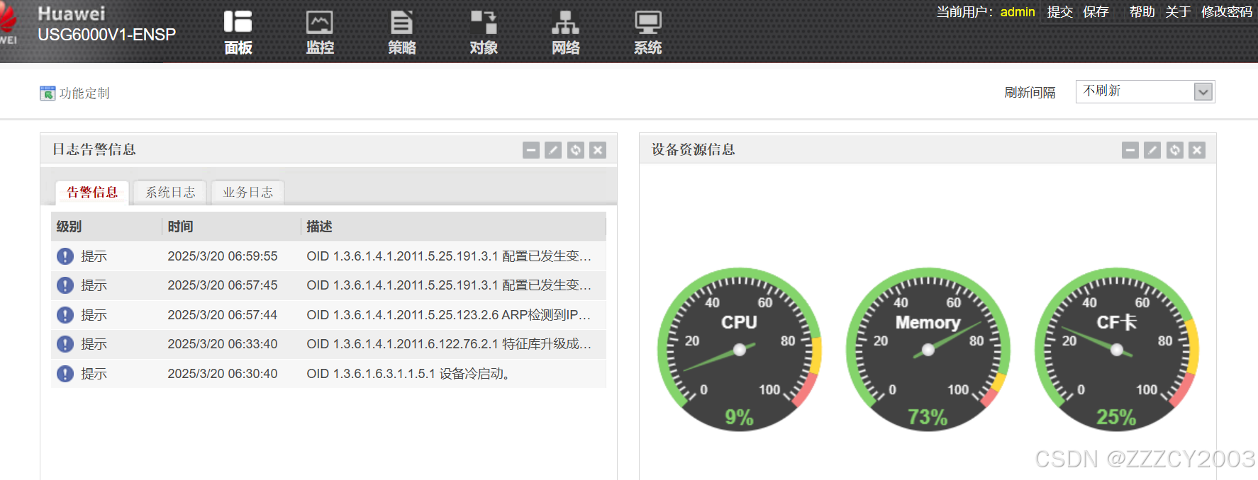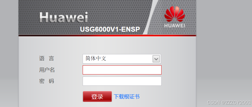 然后打开防火墙。登录防火墙是需要登录账号密码,华为默认的账号密码是:admin/Admin@123。除了需要账号密码之外,还需要更改密码